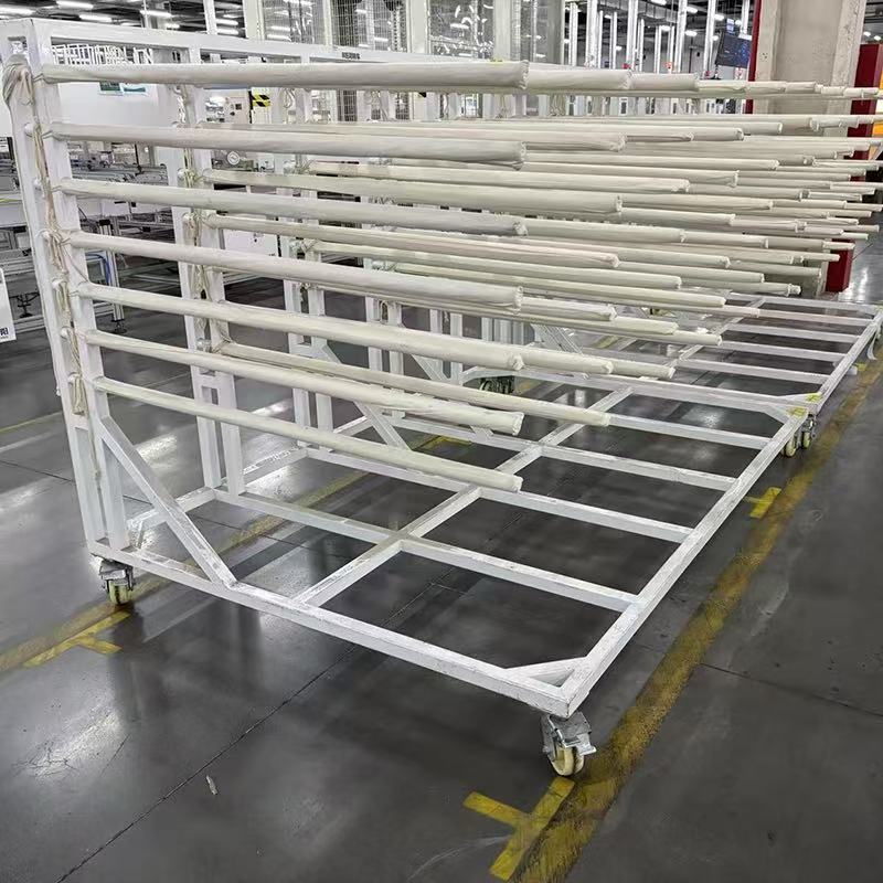 Balancing cycle time differences: The previous process may output faster. For example, the laminator can produce quicker. Output modules can temporarily stay on the buffer cart. This prevents buildup at the workstation. It avoids clogging the production line. Meanwhile, it supplies the next process steadily. Processes like framing receive a stable material flow. This ensures they never stop from waiting.